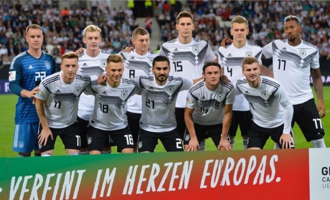 Bei der Fußball Weltmeisterschaft 2018 in Russland wird Joachim Löw höchstwahrscheinlich die Nationalmannschaft mit einer 4-2-3-1 Aufstellung auflaufen lassen. Eine Viererabwehrkette mit zwei Innenverteidiger (Boateng und Hummels, als Backup Süle) und zwei Außenbahnspieler (Hector und Kimmich) bilden die Defensive. Die Mittelfeldmotoren ist eine Doppelsechs aus Khedira und Kroos, davor agiert eine Dreierkette in der Ofensive, bestehend aus Draxler, Reus und Müller. Einzige Sturmspitze ist Timo Werner.
