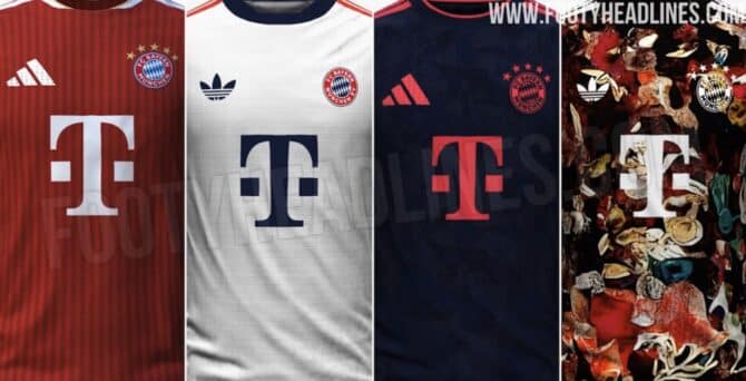 Die Online-Plattform „Footy Headlines“ hat die vier neuen Trikots des deutschen Rekordmeisters veröffentlicht, die sehr wahrscheinlich bereits die finalen Designs repräsentieren. Während das Heimtrikot in einem klassischen Rot mit weißen Elementen (Nummer, Adidas-Streifen, Telekom-Logo) kommt, zeigt sich das Auswärtstrikot in schlichtem Weiß mit dunkelblauen Akzenten. Diese Designs entsprechen den Wünschen vieler eingefleischter Fans, die sich ein traditionelles Erscheinungsbild wünschen.
