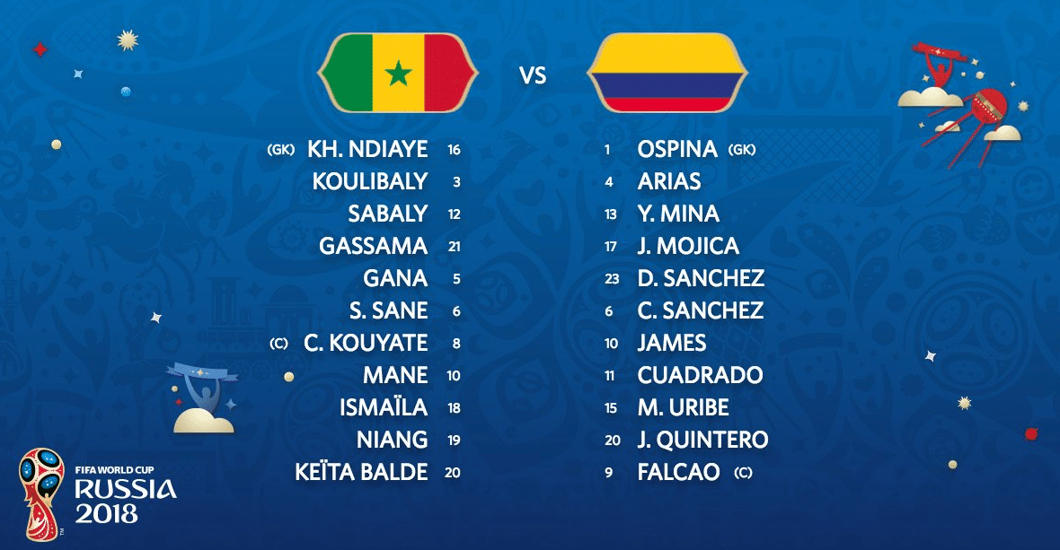 Aufstellungen von Kolumbien gegen den Senegal (Fußball heute)