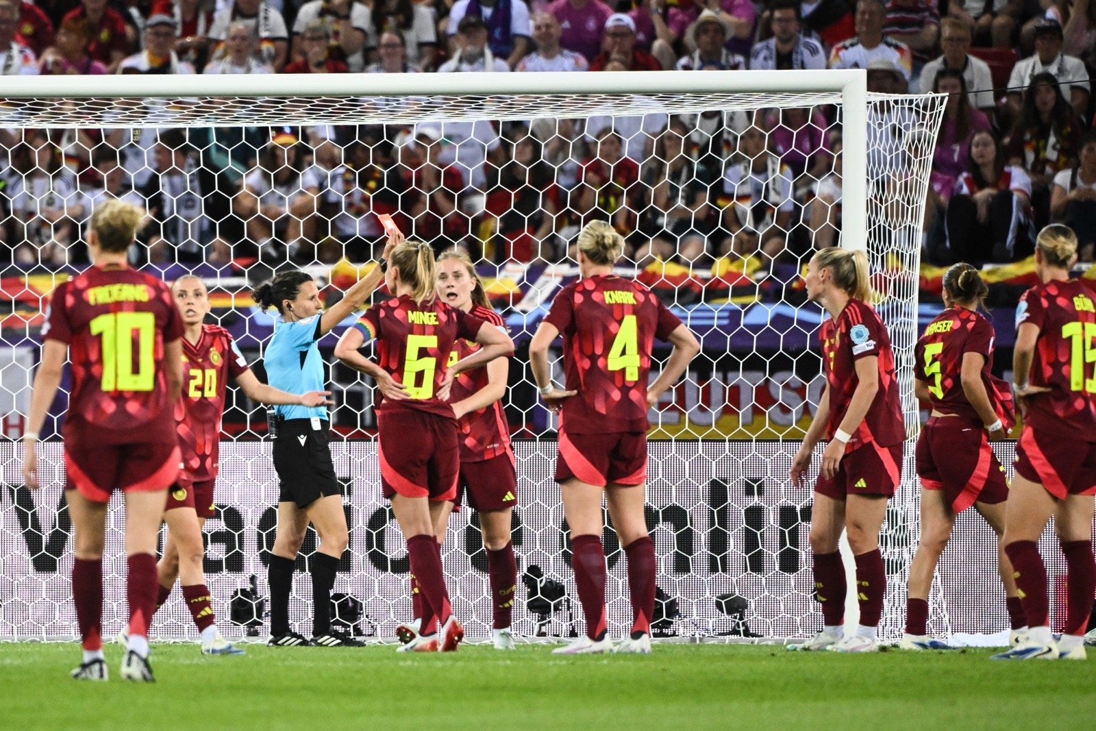 Nach dem Ausgleich durch Stina Blackstenius in der 12. Minute folgte ein kurioses Eigentor von Sarai Linder über Torhüterin Ann-Katrin Berger hinweg. Der Tiefpunkt: Carlotta Wamser verhinderte per Handspiel einen Treffer auf der Linie, sah Rot, und Rolfö verwandelte den fälligen Strafstoß sicher. Das 1:3 zur Pause war schon eine deutliche Hypothek.