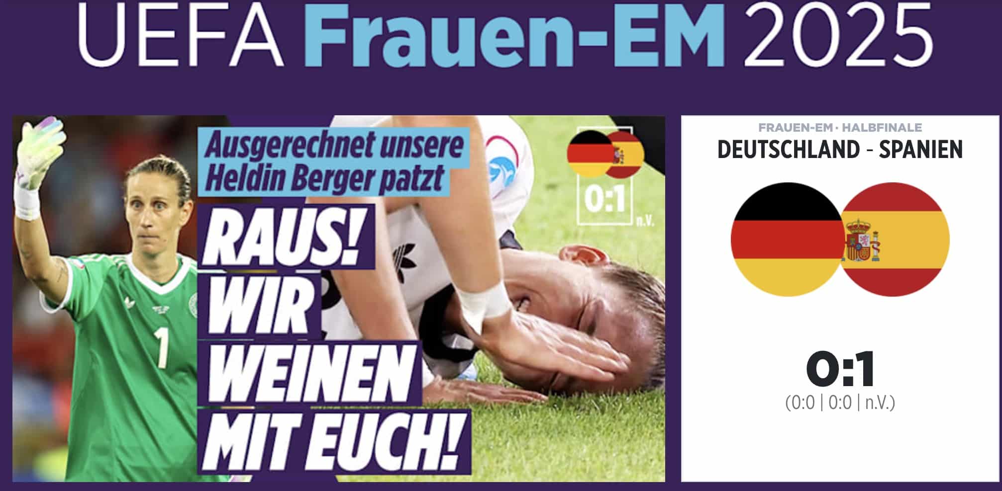 Blick: „Aus der EM-Traum! DFB-Elf trauert Mega-Chance fürs Finale nach. Bonmatís Geniestreich setzt Deutschland schachmatt.“