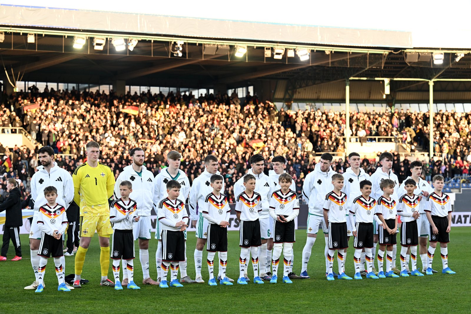 Die Spieler von Nordirland U21 stellen sich vor dem UEFA U21-EM-Qualifikationsspiel gegen Deutschland U21 im Eintracht-Stadion in Braunschweig am 27. März 2026 auf. Stuart Franklin / Getty Images