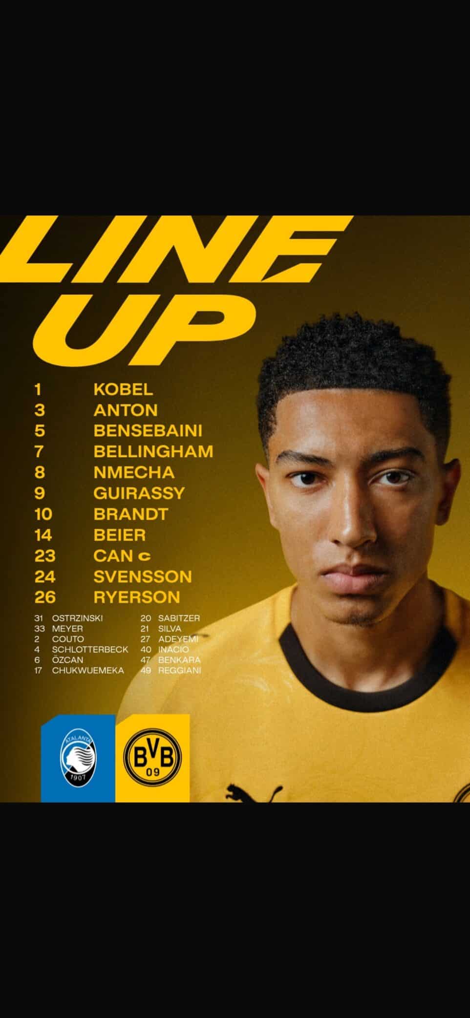 Kobel, Can, Bensebaini, Anton, Svensson, Ryerson, Bellingham, Brandt, Beier, Nmecha, Guirassy