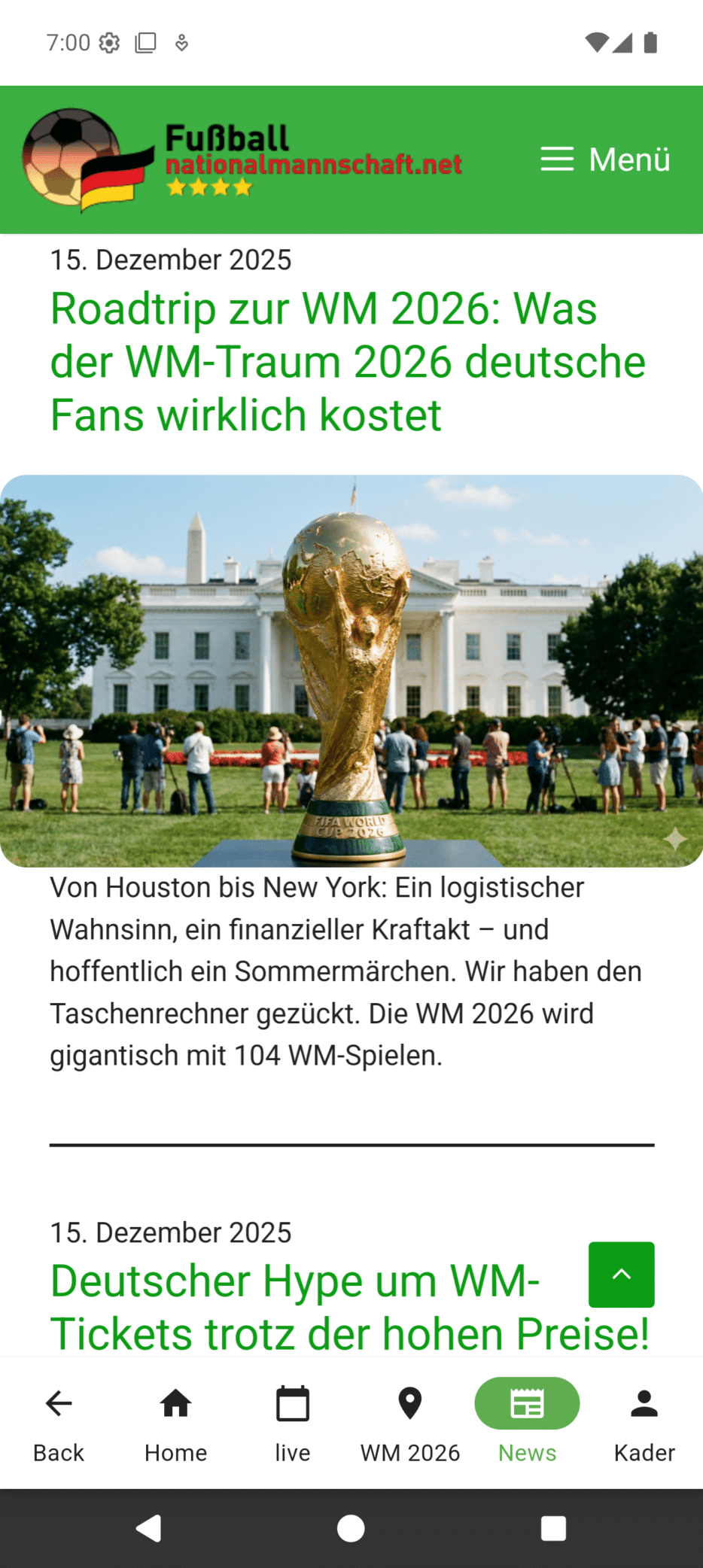 - 1 Fußball Nationalmannschaft APP zur WM 2026, News & Liveticker
