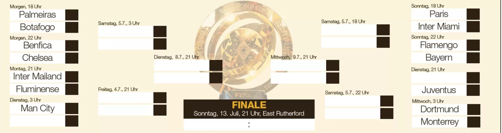 Sollten Bayern und Dortmund ihre Achtelfinalspiele gewinnen, warten im Viertelfinale weitere Hochkaräter. Der FC Bayern würde auf den Sieger aus PSG gegen Inter Miami treffen, Dortmund auf Inter Mailand oder Fluminense. Spätestens ab dem Halbfinale sind dann nur noch echte Schwergewichte im Rennen – der Weg zum Titel ist steinig und gespickt mit Top-Duellen.