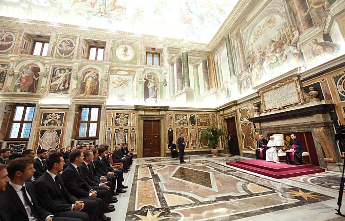 Papstbesuch Fotos * Nationalmannschaft bekommt Heiligenschein beim Papst