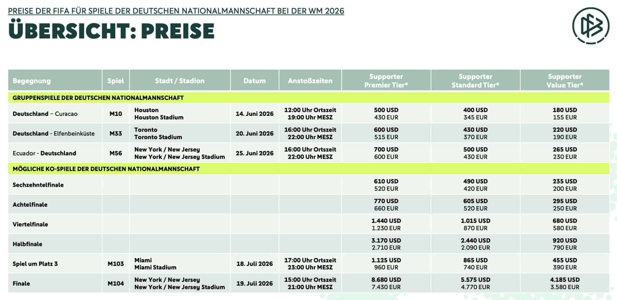 Wer länger bleiben will – das sind die alle WM-Ticketpreise für die deutschen WM-Spiele