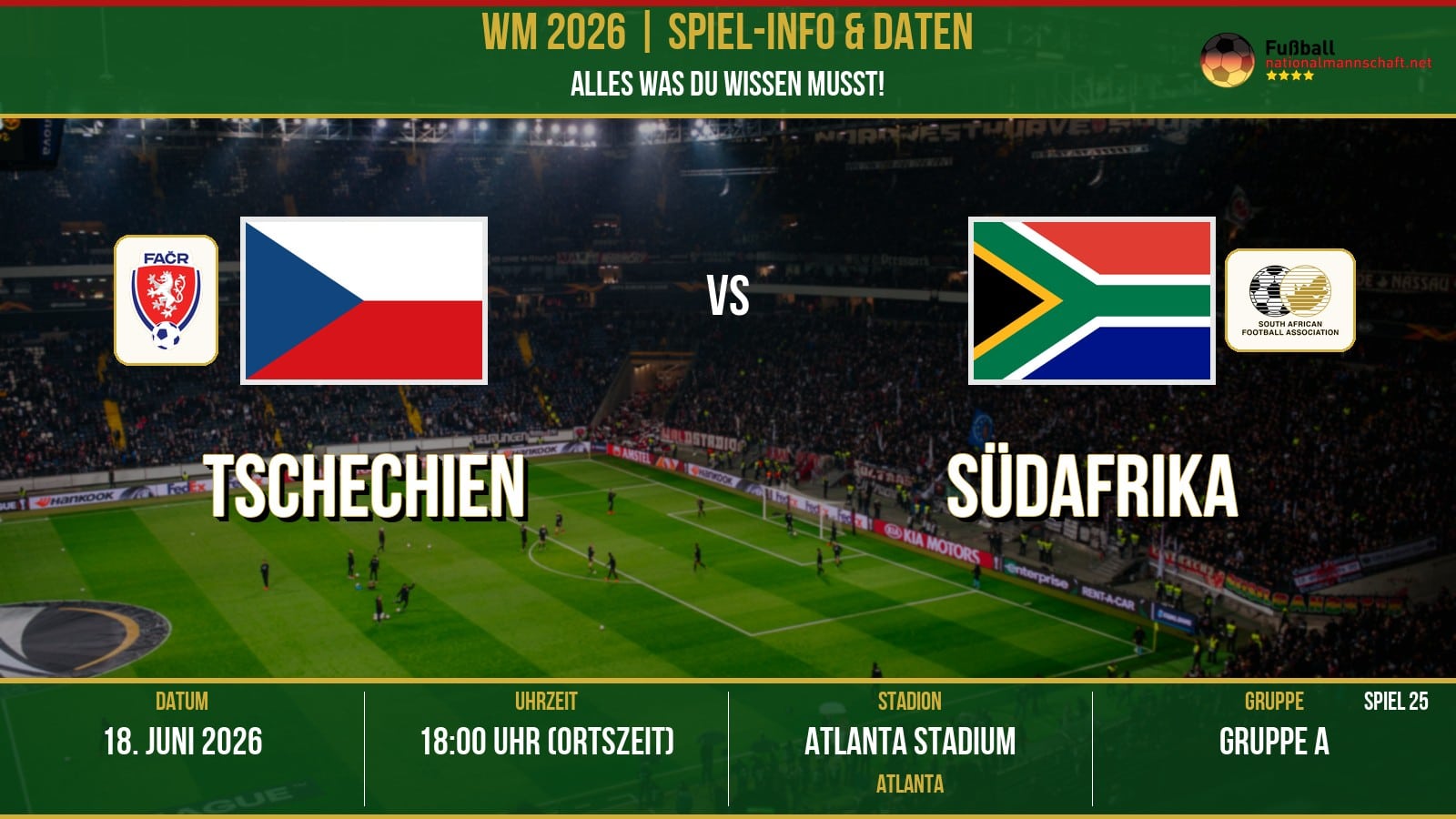Fußball heute WM 2026: Tschechien gegen Südafrika am 18.6.2026