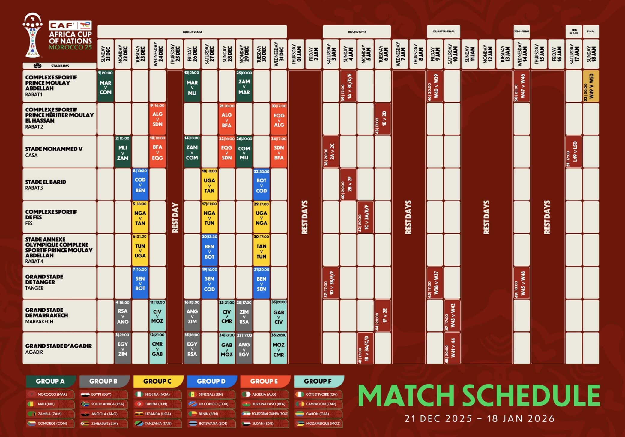 Die Auslosung der sechs Vorrundengruppen fand am 25. Januar 2025 in Rabat statt. Die Lostöpfe orientierten sich unter anderem an der FIFA-Weltrangliste. Schon die Konstellationen versprechen enge Duelle und unerwartete Wendungen:Nachrichten über den Africa Cup of Nations