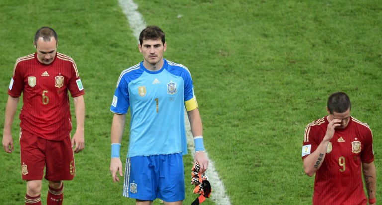 Bereits am zweiten Spieltag stand der Titelverteidiger Spanien mit dem sprichwörtlichen Rücken zur Wand, da die Iberer das erste Spiel gegen die Niederlande überraschend hoch mit 1:5 verloren hatte. Gegner Chile stand nach dem Auftaktsieg gegen Australien in einer erheblich besseren Position dar und konnte entsprechend entspannt in die Begegnung gegen Spanien hineingehen. Die rassigen Chilenen setzten direkt zu Beginn der Partie die Spanier massiv unter Druck und hätten unmittelbar mit der ersten Offensivaktion in der ersten Spielminute bereits in Führung gehen können. Spaniens Jordi Alba rettete in allerhöchster Not für den bereits geschlagenen Keeper Casillas das 0:0. Die erste Halbzeit gehörte gänzlich den kampf- und laufstarken Chilenen, die es den Spaniern niemals gestatteten, ihr technisch hochwertiges Spiel aufzuziehen. In der 20. Spielminute belohnten sich die Südamerikaner für ihren Einsatz selbst mit dem Führungstreffer durch Vargas. Von diesem Zeitpunkt an zeichnete sich die erste große Überraschung des Turniers an, da wohl kein Experte mit einem vorzeitigen Ausscheiden des Titelverteidigers Spanien bereits in der Vorrunde gerechnet hatte. Zwei Minuten vor der Pause jedoch erhöhten die Chilenen nach einem Freistoss, den Iker Casillas lediglich abklatschen konnte, durch Aranguiz auf 2:0. Mit diesem Stand ging es in die Kabine. Direkt nach Wiederanpfiff warf der Titelverteidiger alles nach vorne um die Schmach des vorzeitigen Ausscheidens irgendwie zu verhindern. Die Chancen, die sich den Spaniern im Verlauf der zweiten Halbzeit ergaben, waren jedoch nicht 100 prozentig und brachten die Chilenen auch nicht in Verlegenheit, so dass die Südamerikaner den komfortablen 2:0 Vorsprung über die Zeit retten und die Spanier somit aus dem Turnier befördern konnten.