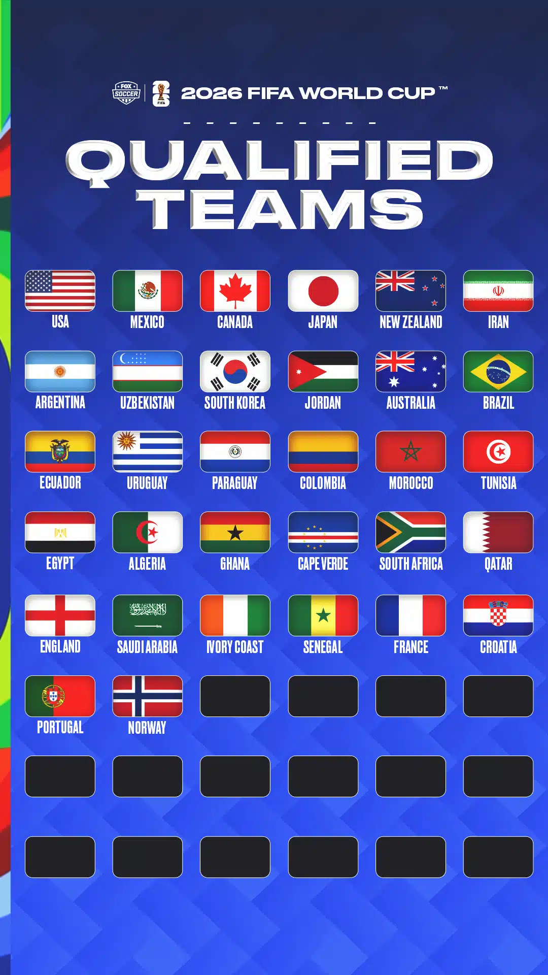 Zum Zeitpunkt der Auslosung (Dezember 2025) stehen 42 von 48 Teilnehmern fest. Die letzten 6 Plätze werden im März 2026 durch interkontinentale Playoff-Spiele vergeben.